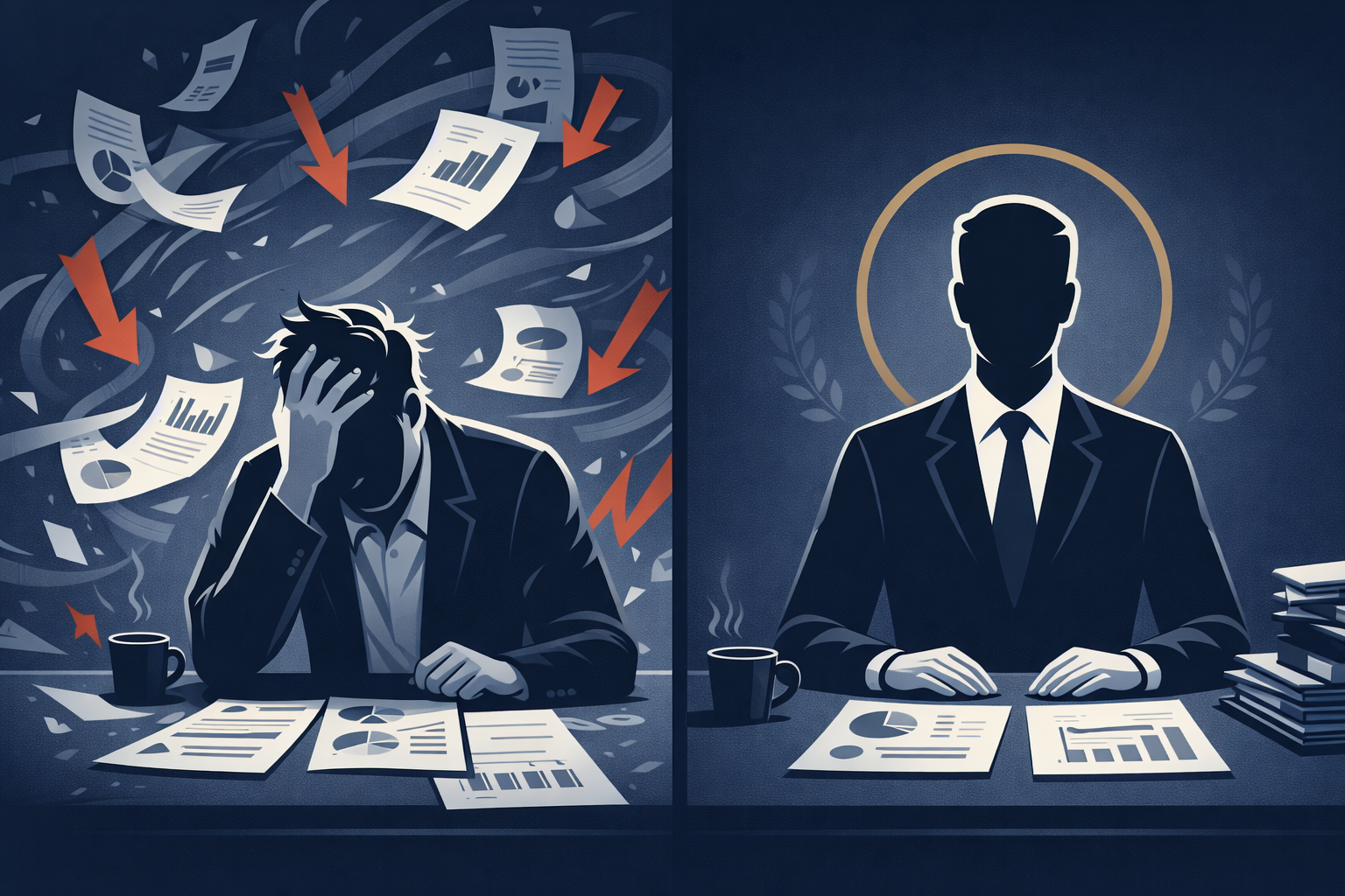 Essa instabilidade cria decisões impulsivas. Mudanças estratégicas feitas por medo. Contratações para aliviar ansiedade. Demissões para descarregar frustração. O negócio vira extensão do ego.
