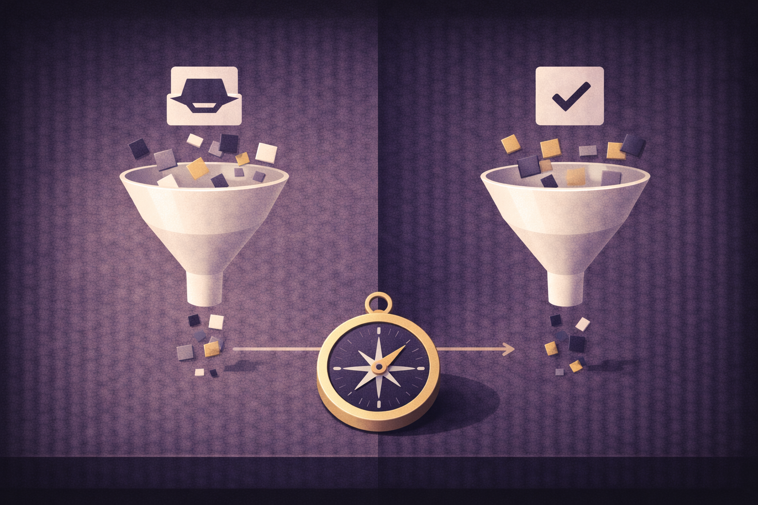 O maior problema de empreendedores não é falta de organização. É excesso de entrada. Reuniões sem critério, demandas de cliente barulhento, urgências fabricadas, mensagens constantes, tarefas herdadas de outras pessoas.
